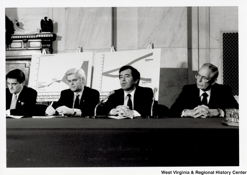 - Second from the right, Representative Nick J. Rahall (D-W.Va.) sits at a panel with three unidentified men.