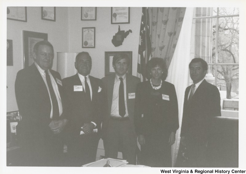 - On the far right, Representative Nick J. Rahall (D-W.Va.) stands for a photograph with three unidentified men and an unidentified woman.
