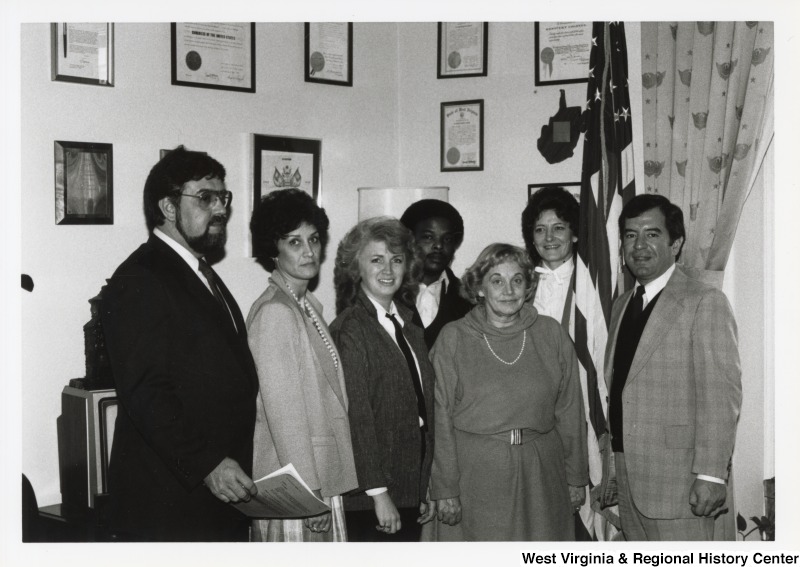 - On the far right, Representative Nick J. Rahall (D-W.Va.) stands for a photograph with six unidentified people.