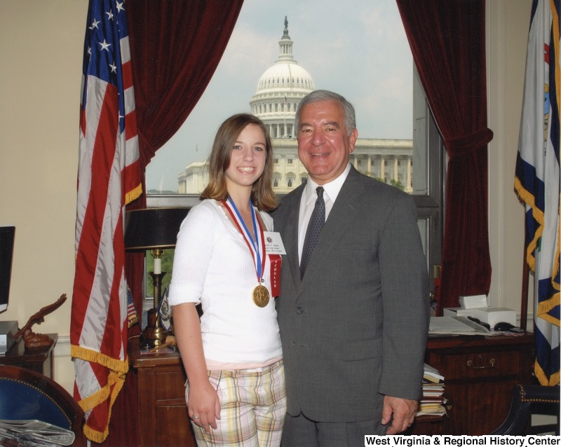 - Congressman Nick Rahall (D-WV) with medal-winning Sarah Dolan in his D.C. office.