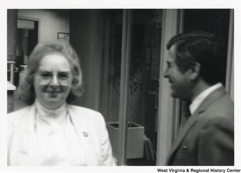 - On the right, Representative Nick J. Rahall (D-W.Va.) smiles with an unidentified woman.