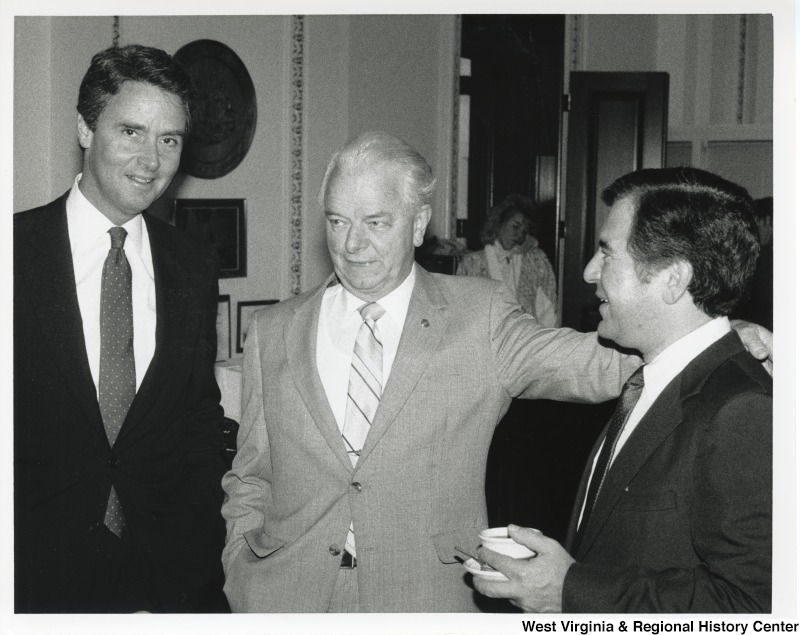 - Unidentified man, Senator Robert C. Byrd (center), and Congressman Nick Rahall, II (right) at an event.