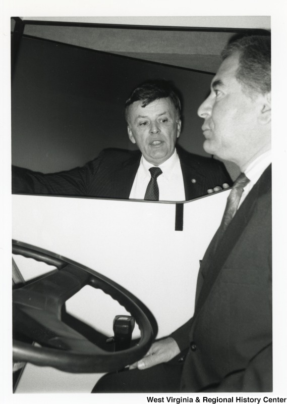 Photograph of Congressman Rahall in a vehicle with an unidentified man