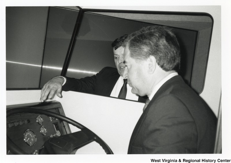 Photograph of Congressman Rahall in a vehicle with an unidentified man