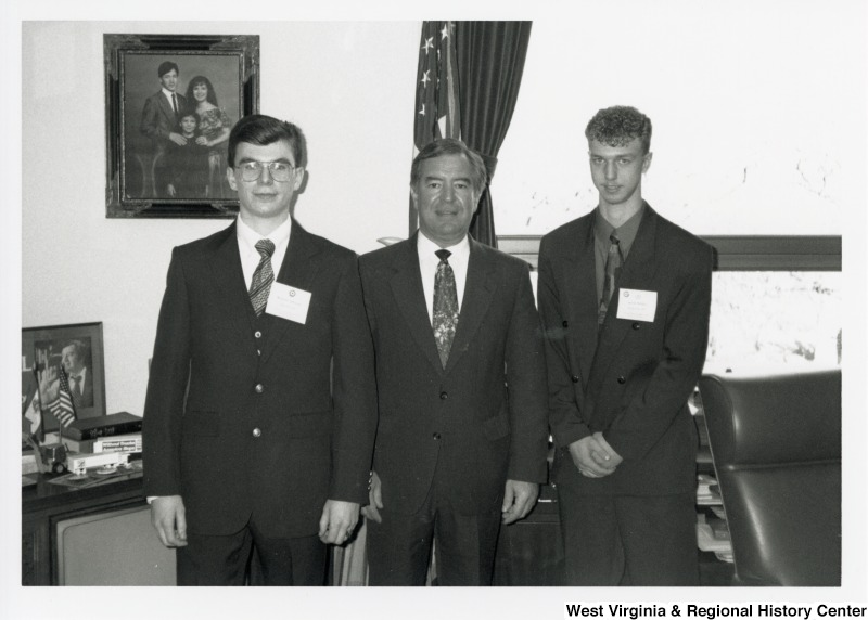 - Congressman Nick J. Rahall (D-W.Va.) stands between two unidentified men in his office.