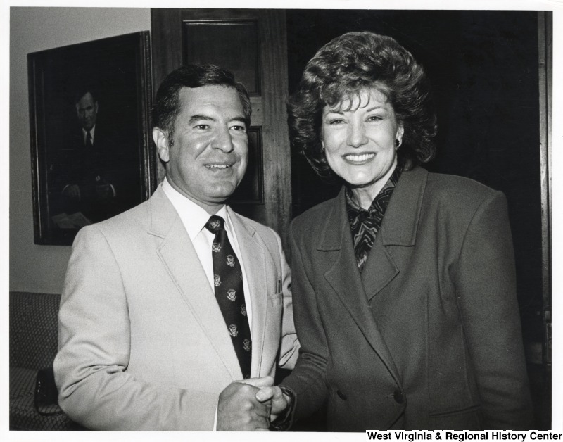 - On the left, Representative Nick J. Rahall (D-W.Va.) shakes hands with Secretary of Transportation Elizabeth Dole.