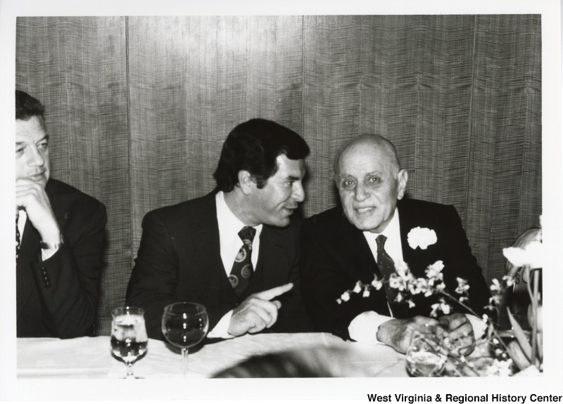 - Congressman Nick Rahall (D-WV) with two unidentified men at a dinner.