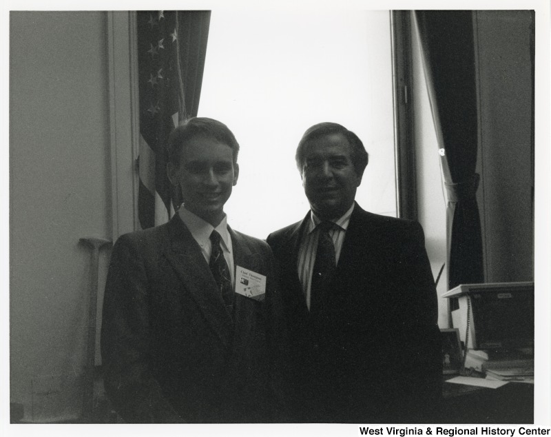 - Representative Nick J. Rahall (D-W.Va.) stands for a photograph with student Chad Thompson.