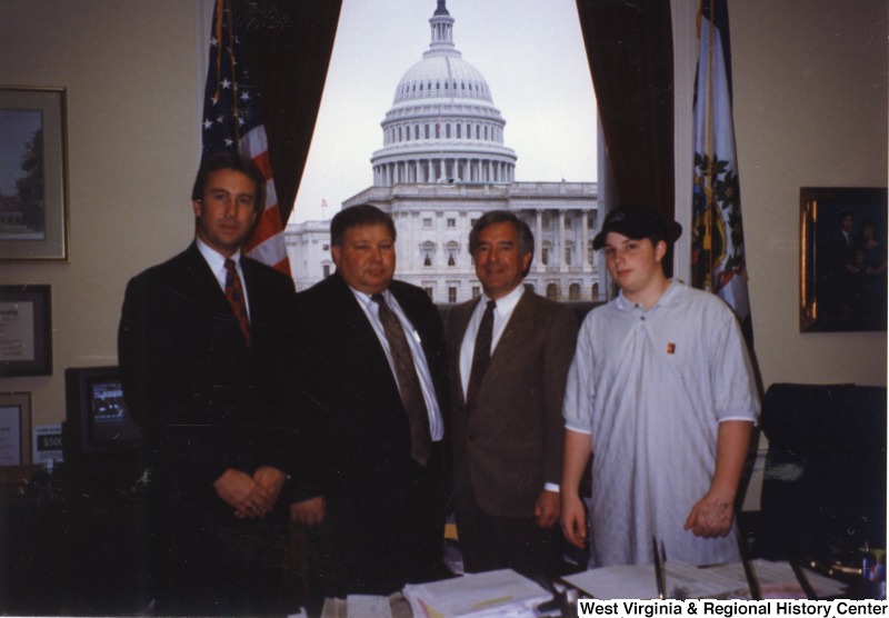 - Second from the right, Representative Nick J. Rahall (D-W.Va.) stands with three unidentified men.