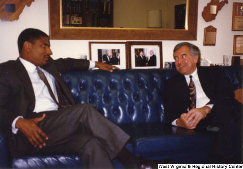 - Representative Nick J. Rahall (D-W.Va.) (right) talking to Rodney Slater while seated on a couch.