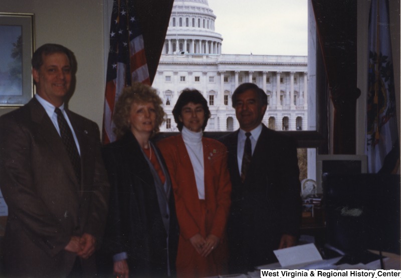- On the far right, Representative Nick J. Rahall (D-W.Va.) stands in his office with two unidentified women and an unidentified man.