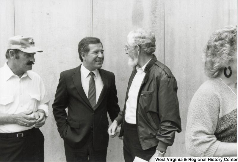 - Photograph of Congressman Rahall speaking to two unidentified men