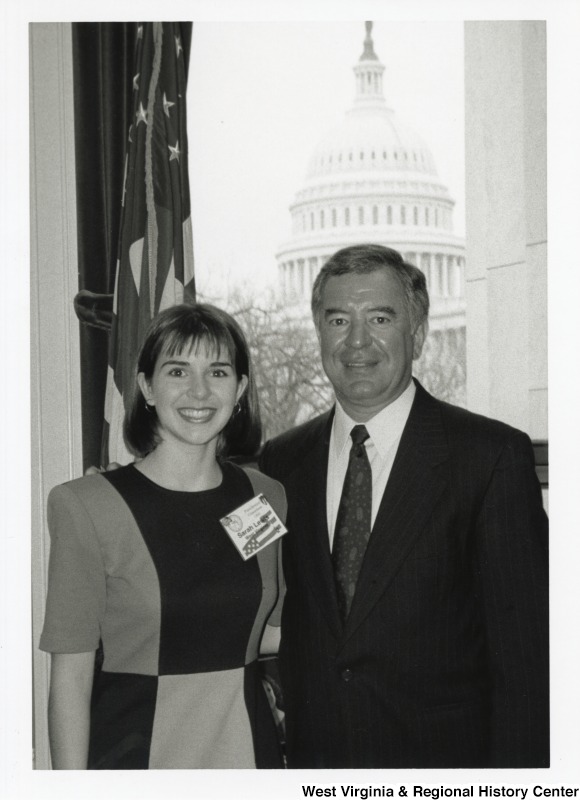 - On the right, Representative Nick J. Rahall (D-W.Va.) stands for a photograph in his office with Sarah Lewis.